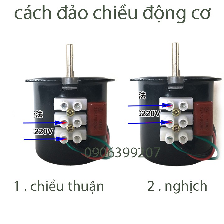sử dụng điện áp 220V vô cùng tiện lợi và rất dễ để đảo chiều quay ( xem hướng dẫn hình ảnh bên dưới )