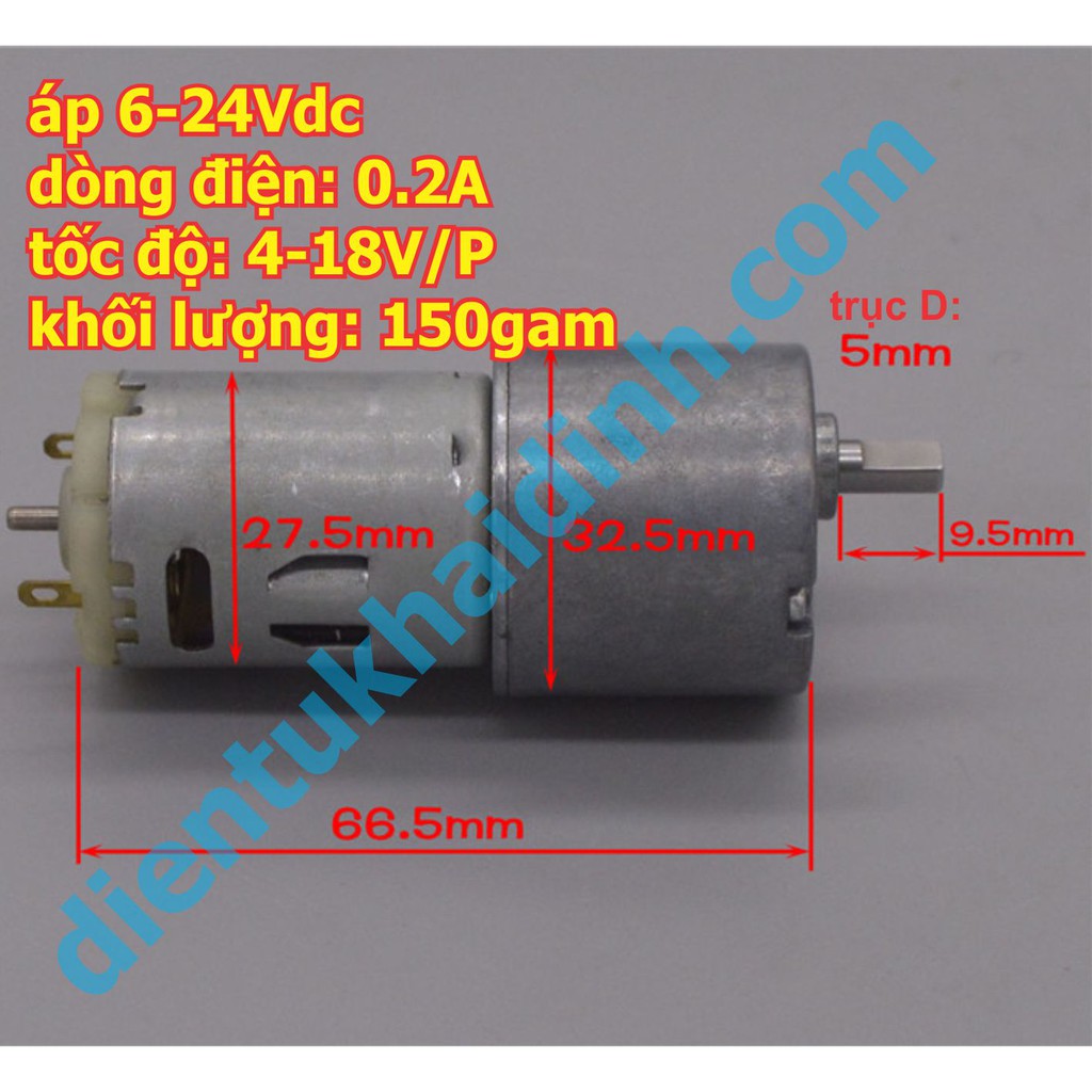 động cơ giảm tốc 385 6-24V 0.2A 4-18v/p trục D 5x10mm 140g kde4892