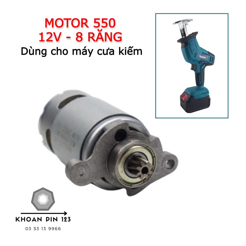 Động cơ, Motor 550 DC 21v 8 răng dùng cho máy cưa kiếm thông dụng
