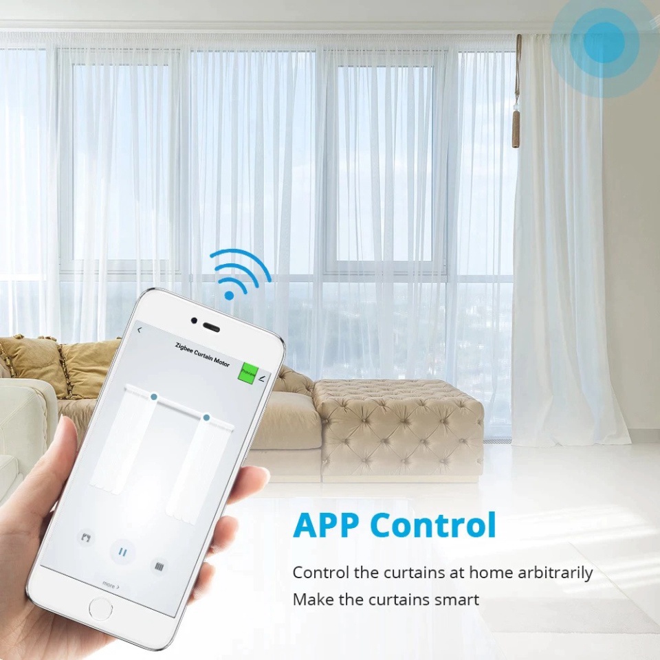 Là motor rèm cửa nằm trong hệ sinh thái nhà thông minh Tuya kết hợp với trung tâm Zigbee Tuya điều khiển từ xa qua sóng Zigbee khiến bạn không cần điều khiển rèm bằng các động tác thủ công mà chỉ cần ngồi một chỗ và thao tác điều khiển rèm trên điện thoại từ xa một cách nhanh chóng và tiện lợi.