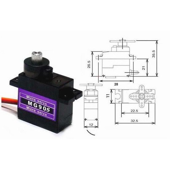 Động Cơ Servo MG90S là phiên bản nâng cấp của động cơ RC Servo 9G với các bánh răng được làm bằng kim loại cho lực kéo mạnh và độ chính xác cao hơn các loại làm bằng nhựa. Động cơ MG90S thường được sử dụng để làm các mô hình nhỏ hoặc các cơ cấu kéo không cần đến lực nặng, động cơ RC Servo MG90S có tích hợp sẵn Driver điều khiển động cơ bên trong nên có thể dễ dàng điều khiển góc quay bằng phương pháp điều độ rộng xung PWM.