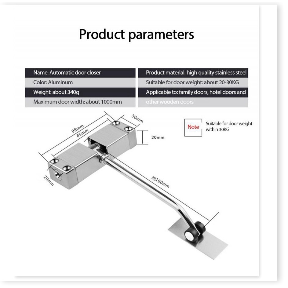 6. Phù hợp với trọng lượng cửa 30kg, chiều rộng cửa 1000mm.