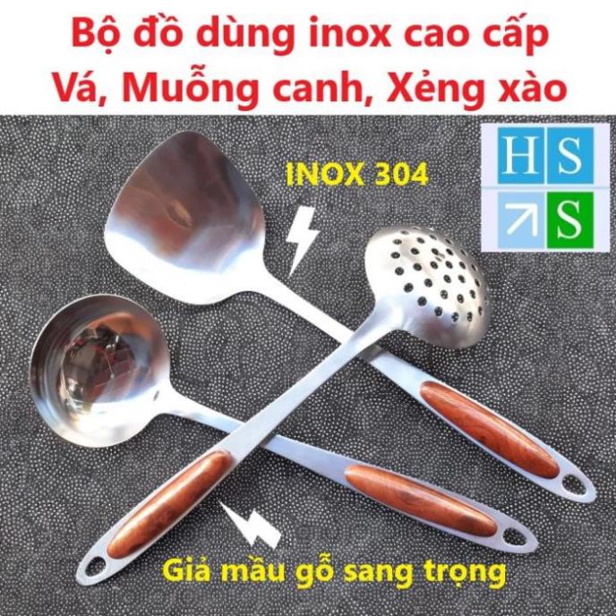 Nhà cửa & Đời sống > Dụng cụ nhà bếp > Cây vét bột & đồ gắp thức ăn || (Đồng giá) Vá đặc (Muỗng canh ) Vá lỗ , Xẻng xào chất liệu inox 304 cao cấp, cán cách nhiệt vân gỗ sang trọng - HS ShopCòn hàng