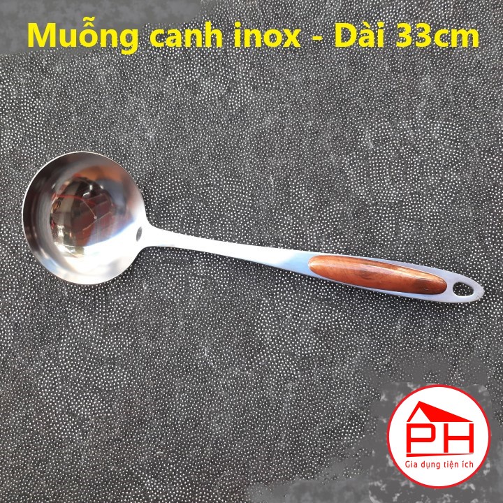 Giới thiệu (Đồng giá) Vá đặc (Muỗng canh ) Vá lỗ Xẻng xào chất liệu inox 304 cán cách nhiệt vân gỗ sang trọng - Gia dụng Phước Hòa