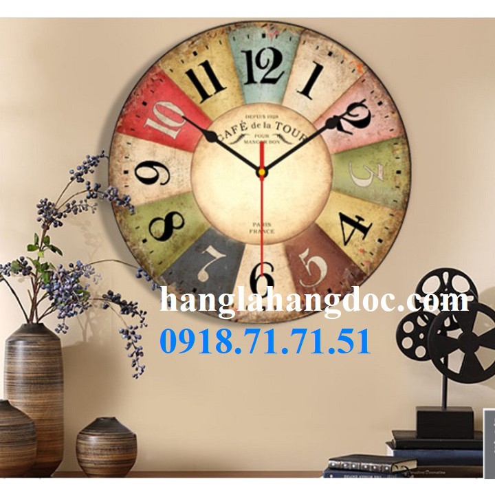 Nhà cửa & Đời sống > Trang trí nhà cửa > Đồng hồ || Đồng gỗ gỗ treo tường phong cách vintage Bắc Âu, đường kính 30.5cm, kim trôi êm dịu (version 2)Còn hàng