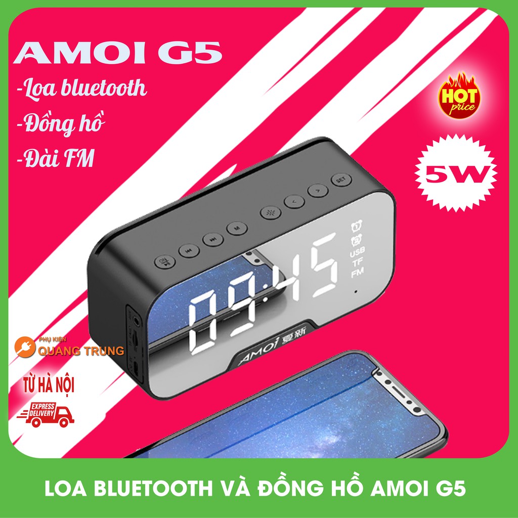 Thiết Bị Âm Thanh > Dàn âm thanh > Loa || Đồng hồ Amoi G5 kiêm loa bluetooth G5, có khe thẻ nhớ,đo nhiệt độCòn hàng