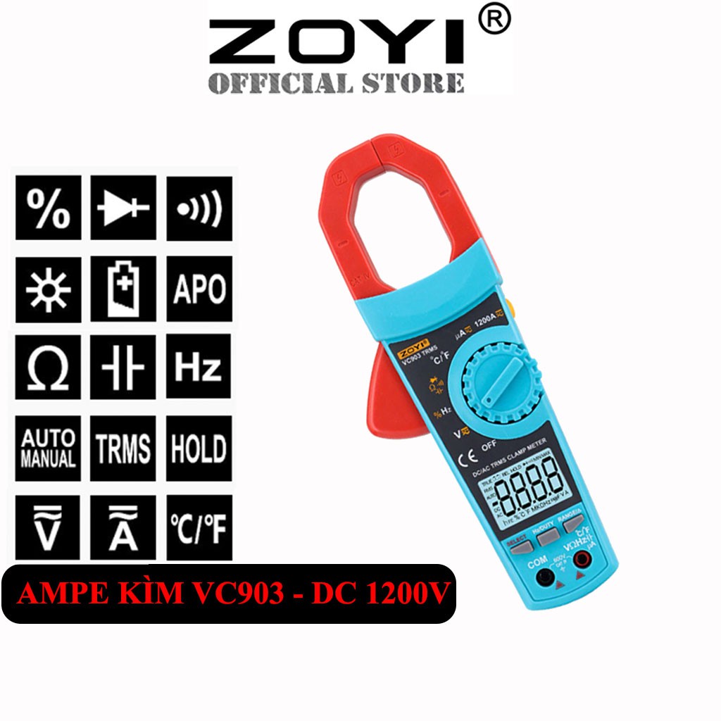 Đồng Hồ Ampe Kìm Vạn Năng Chất Lượng Cao Zoyi VC903 Đo AC/DC 1200 Hàng Chính Hãng - Bảo Hành 12 Tháng