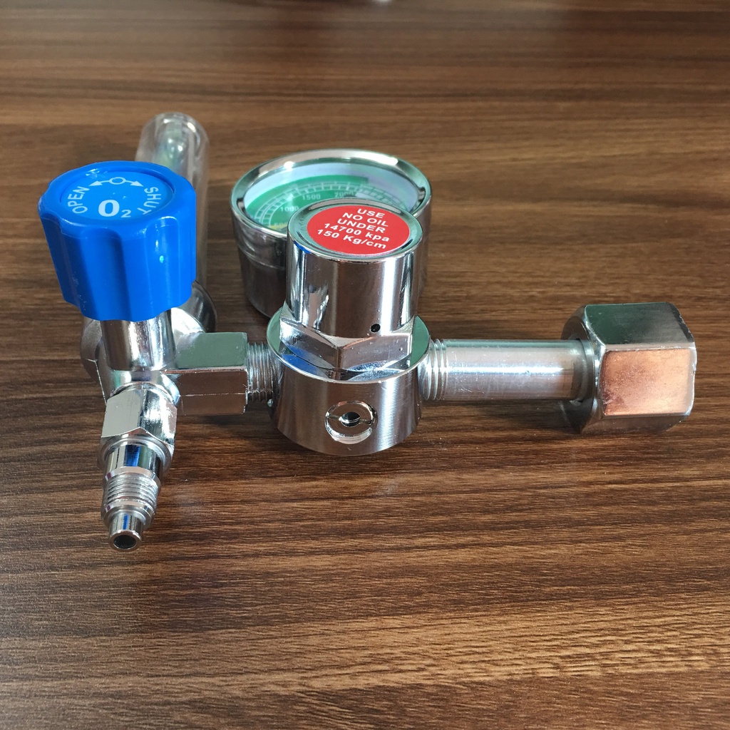 Đồng hồ có hiển thị mức áp suất bình khí trên đồng hồ đo áp suất thể hiện lượng khí còn trong bình. Núm Chỉnh điều chỉnh lưu lượng khí theo nhu cầu của người dùng. Không có dầu cho bộ đo áp suất và thân điều chỉnh.