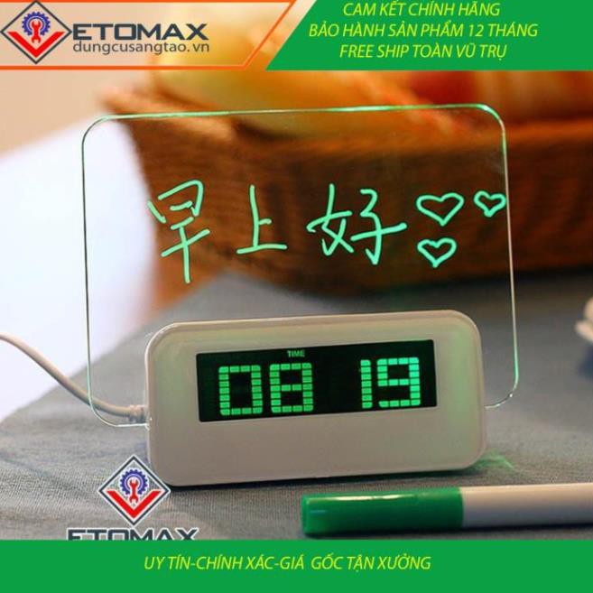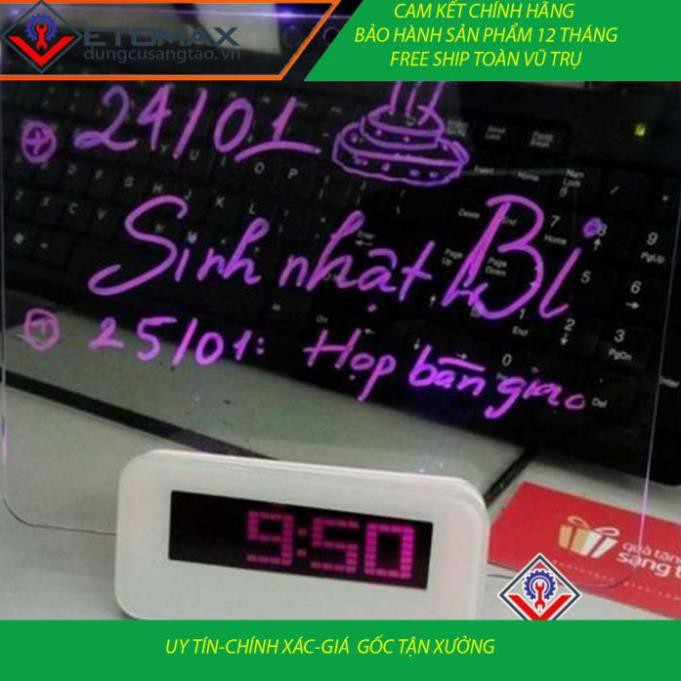 🔸Là sự kết hợp độc đáo giữa đồng hồ báo thức và bảng ghi nhớ phát sáng, bạn có thể để lại những ghi chú quan trọng trên bảng phát sáng để nhắc nhở bạn mỗi ngày hay nhắn nhủ động viên thúc đấy quyết tâm, đồng thời đồng hồ có thể dùng làm đèn ngủ và xem giờ được cả trong ban đêm.