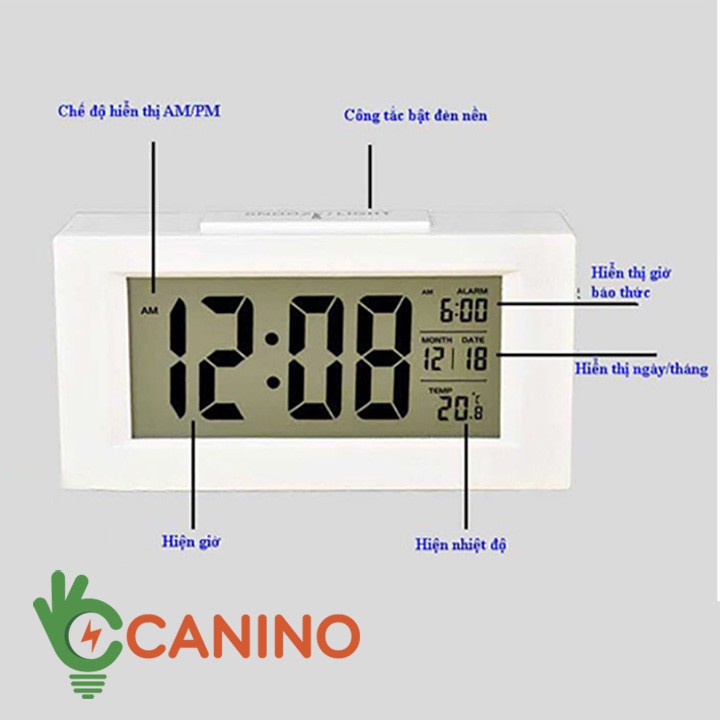 Đồng hồ báo thức cảm biến phát sáng trong đêm V4 Canino ( bảo hành 12 tháng)