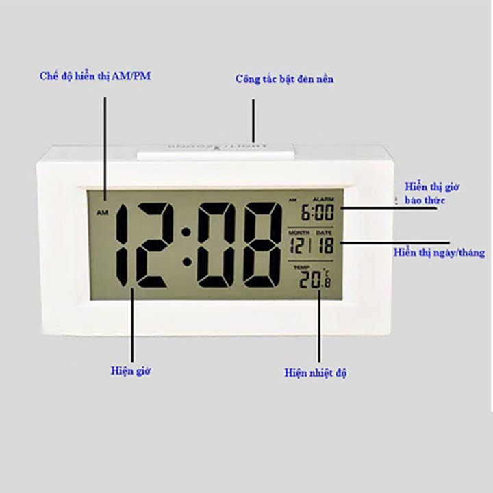Đồng hồ báo thức cảm biến phát sáng trong đêm M3– Màn hình LCD to, rõ, chữ số dạng LED sang trọng