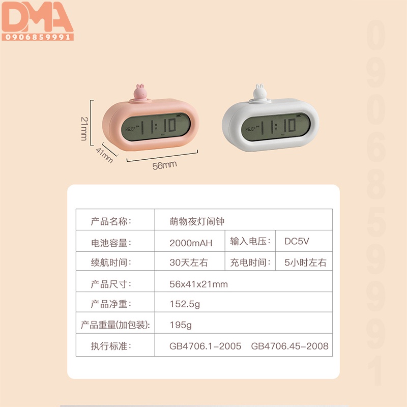 Đồng hồ báo thức có đèn ngủ hình thỏ dễ thương (WQ-09)