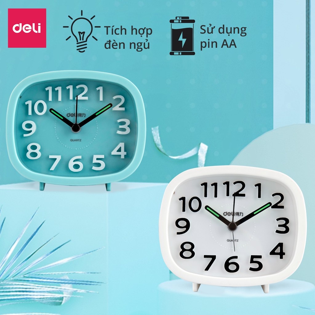 Đồng hồ báo thức dạ quang Deli - Hai màu Trắng/ Xanh dương - 8800==============================================