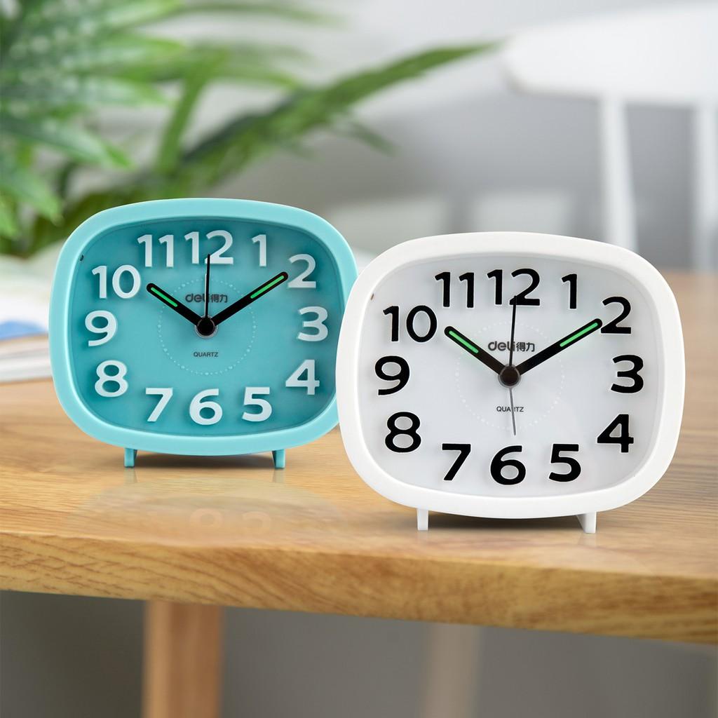 Đồng hồ báo thức dạ quang Deli - Hai màu Trắng/ Xanh dương - 8800