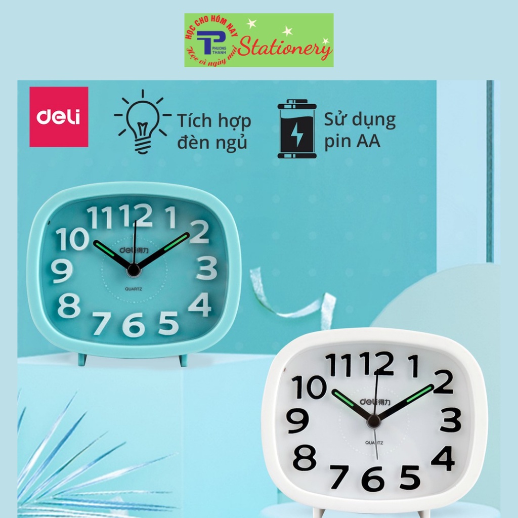 𝐕𝐏𝐏 𝐏𝐇𝐔𝐎𝐍𝐆𝐓𝐇𝐀𝐍𝐇 - CỬA HÀNG ĐỘC QUYỀN CỦA @DELIVIETNAMĐồng hồ báo thức dạ quang Deli - Trắng/ Xanh dương - 8800