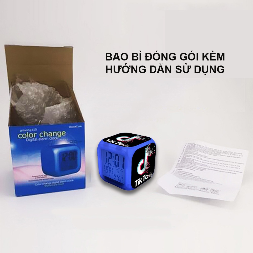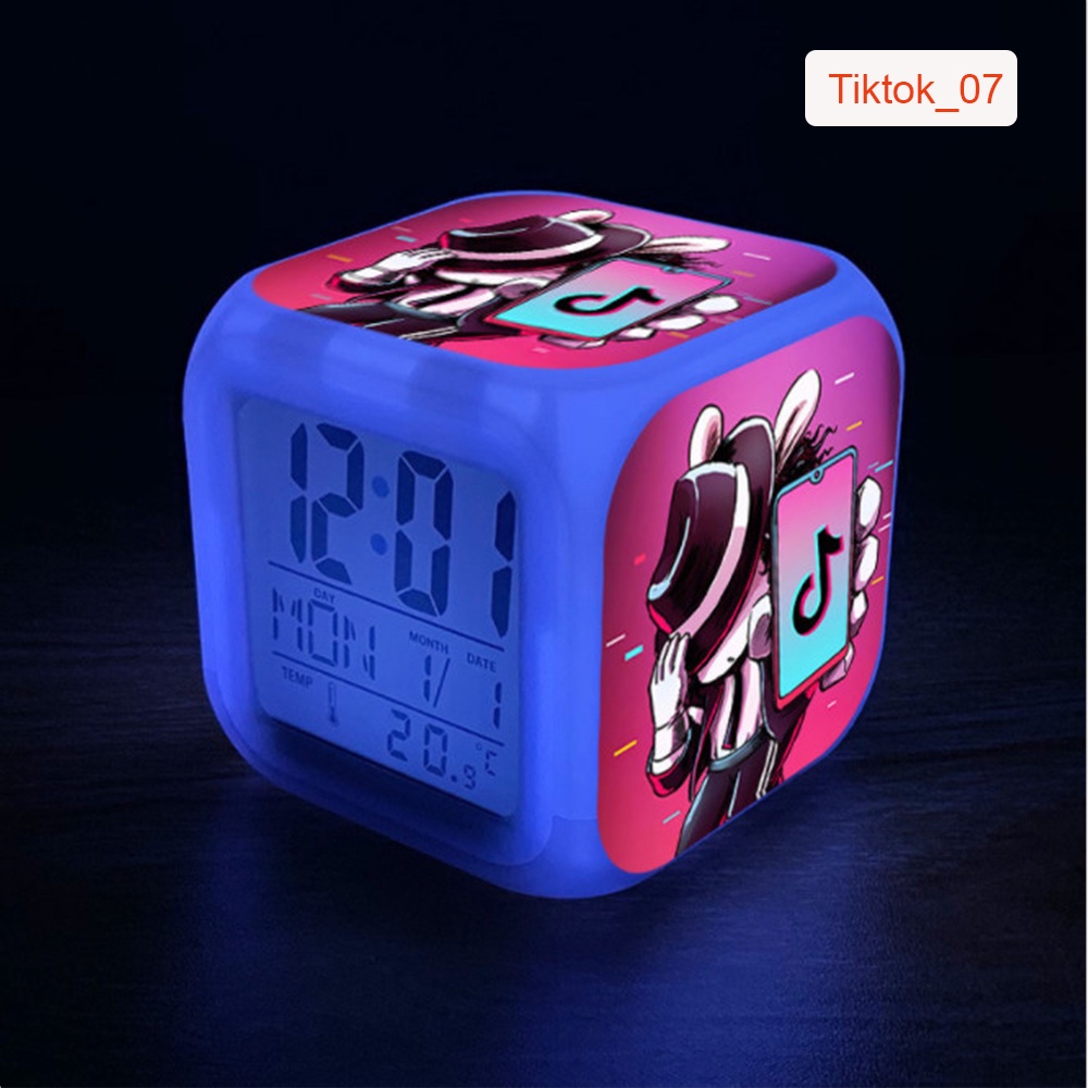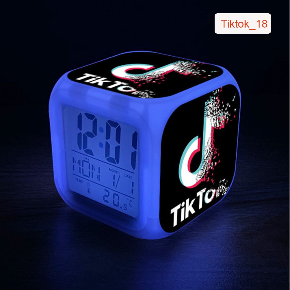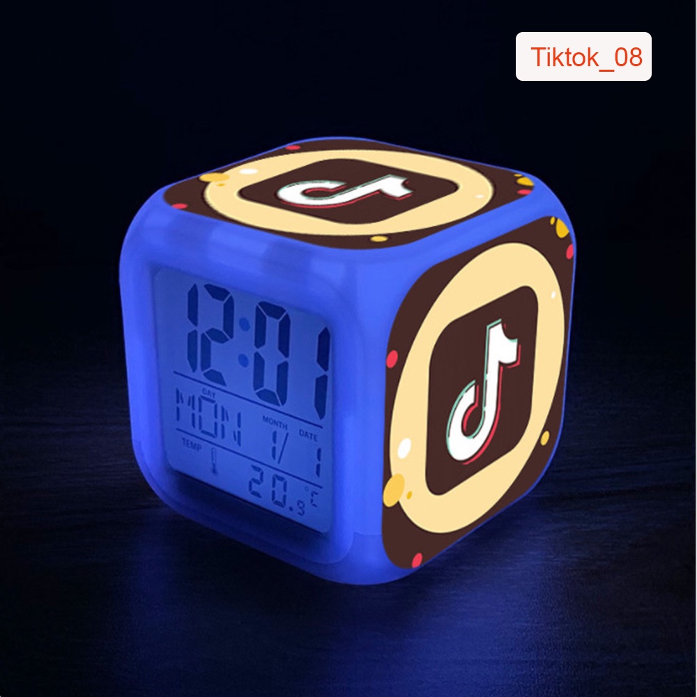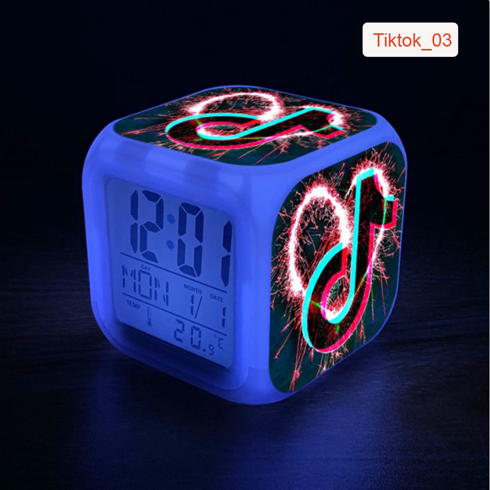 Đồng Hồ Báo Thức Để Bàn LED Đổi Màu in Hình Biểu Tượng Tiktok 2021. Hiển Thị Ngày Tháng, Nhiệt Độ. Pin Tặng Kèm