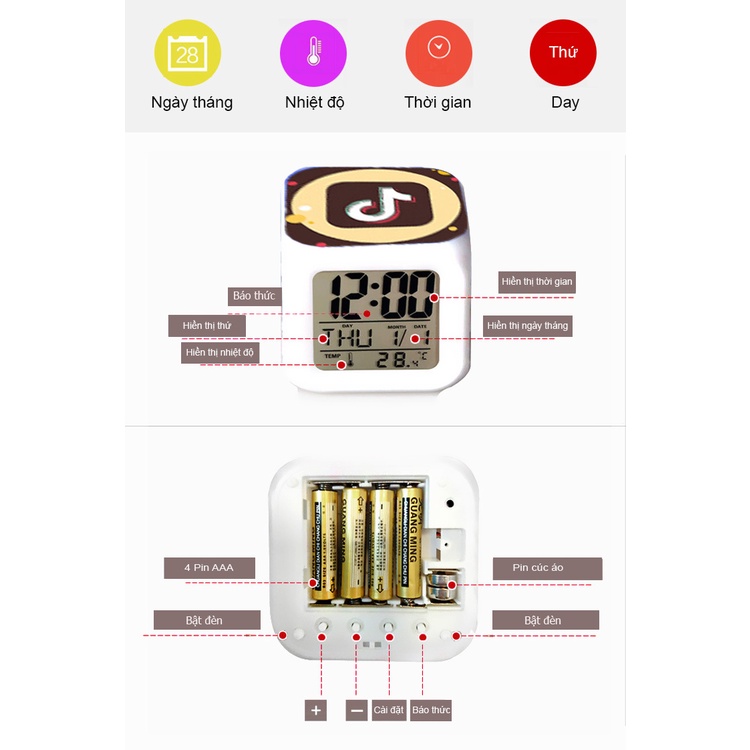 Giới thiệu Đồng Hồ Báo Thức Để Bàn LED Đổi Màu in Hình Biểu Tượng Tiktok 2021. Hiển Thị Ngày Tháng, Nhiệt Độ. Pin Tặng Kèm