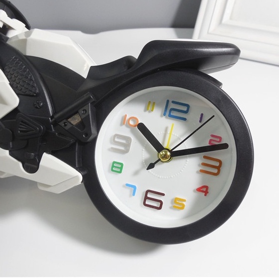 Đồng hồ báo thức nhỏ để bàn mô hình hoạt hình sáng tạo dễ thương, xe đua Moto.Mã sản phẩm: HQ66-08ABC