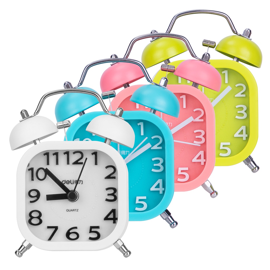 Đồng hồ báo thức để bàn vuông Deli - Chuông đôi kêu siêu to - Chống ồn - Thiết kế đơn giản, nhiều màu sắc chọn lựa -9035