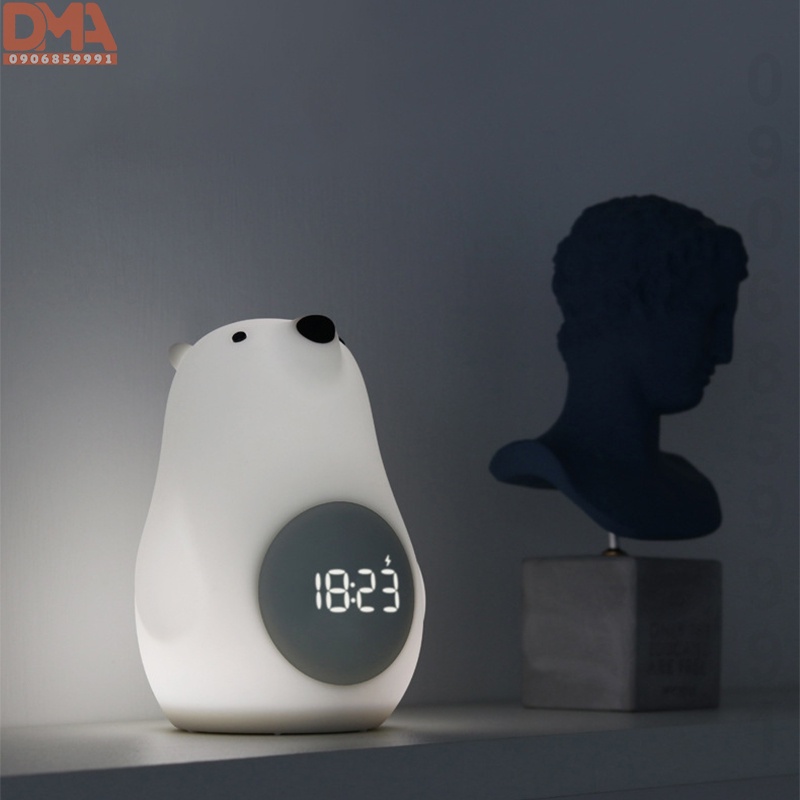 Đồng hồ báo thức,đèn ngủ cảm biến âm thanh gấu bắc cực dễ thương (H-CL-02)