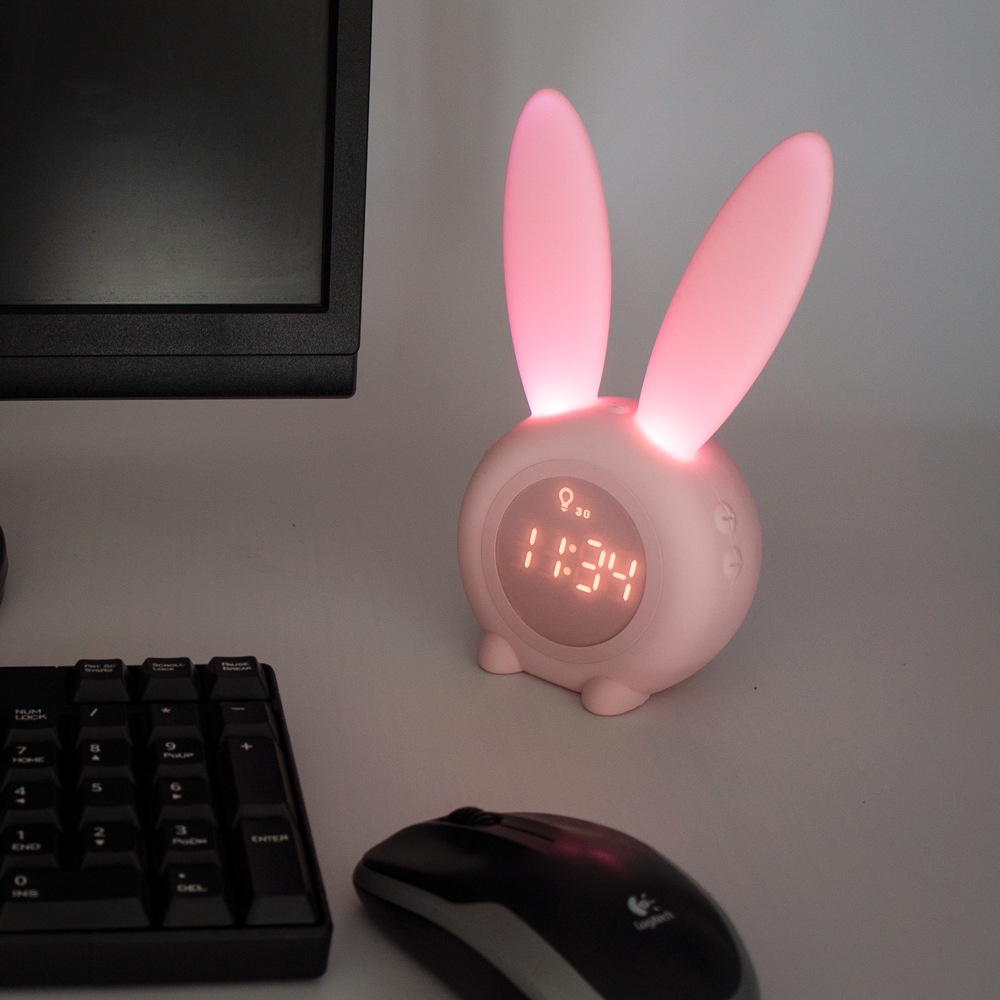 Giới thiệu Đồng hồ báo thức điện tử kiêm đèn ngủ Tai Thỏ Bunny ✅ Đồng hồ để bàn✅ Cảm ứng âm thanh đổi màu✅ Thể hiện nhiệt độ✅ Decor