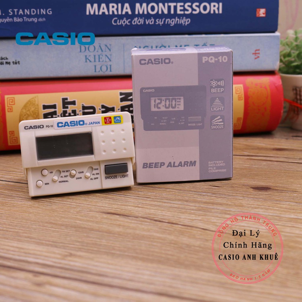 Nhà cửa & Đời sống > Trang trí nhà cửa > Đồng hồ || Đồng hồ báo thức du lịch - để bàn có đèn LED Casio PQ-10-7R màu trắng ( 8 x 6cm)Còn hàng