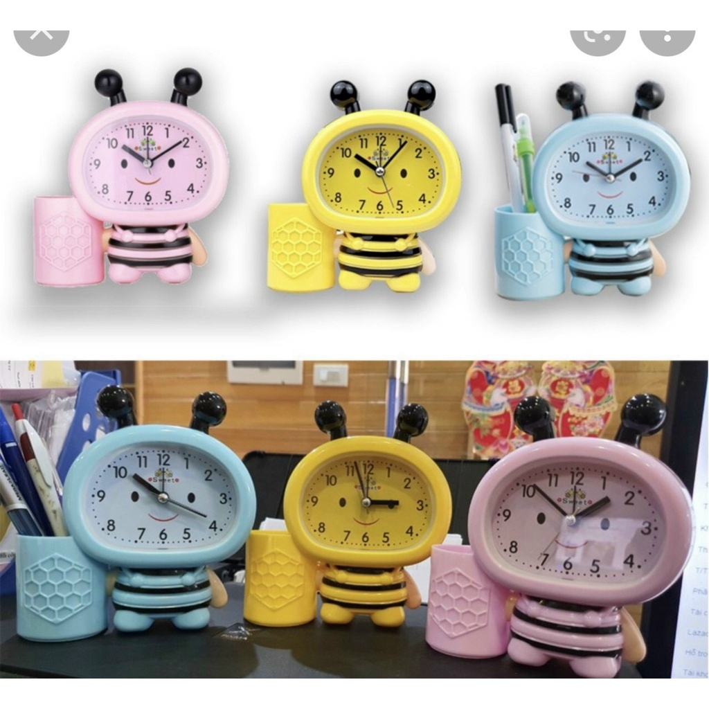 Đồng hồ báo thức hình con ong kèm ống cắm bút siêu đáng yêu💎𝐾𝑖𝑒̂̉𝑢 𝑑𝑎́𝑛𝑔 𝑛ℎ𝑜̉ 𝑔𝑜̣𝑛, 𝑥𝑖𝑛ℎ 𝑥𝑎̆́𝑛