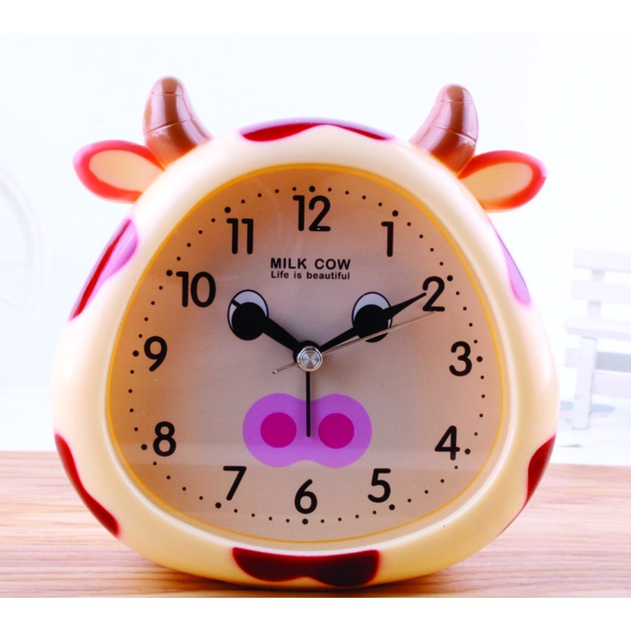 Đồng hồ báo thức họa tiết bò sữa, đồng hồ để bàn hoạt hình dễ thương trang trí sáng tạo cho béĐồng hồ báo thức phù hợp cho các bé xem giờ, báo thức để chủ động giờ trong việc học tập và sinh hoạt hàng ngày.