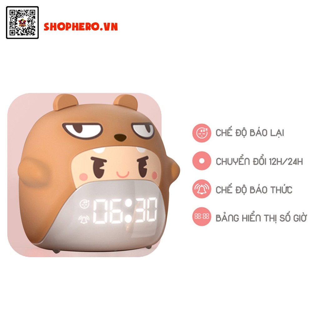 Đồng hồ báo thức kết hợp đèn ngủ nhân vật Gấu Nâu