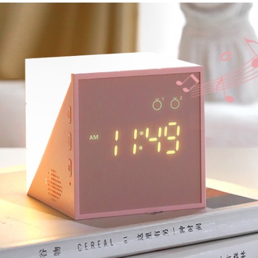 - Đồng hồ điện tử có 6 cấp độ nhạc chuông khác nhau, hiển thị phần trăm pin. Loa báo thức có thể chọn một số giai điệu khác nhau được cài sẵn tuỳ theo sở thích từng người. Đồng hồ báo thức thông minh giúp huấn luyện giấc ngủ, gọi chủ nhân mỗi sớm mai thức dậy đúng giờ bằng giọng nói dễ thương, đáng yêu.