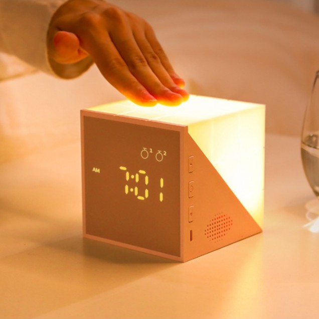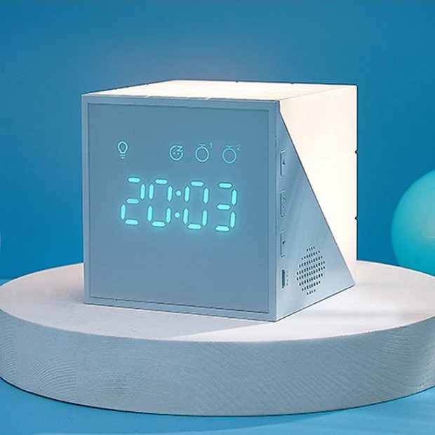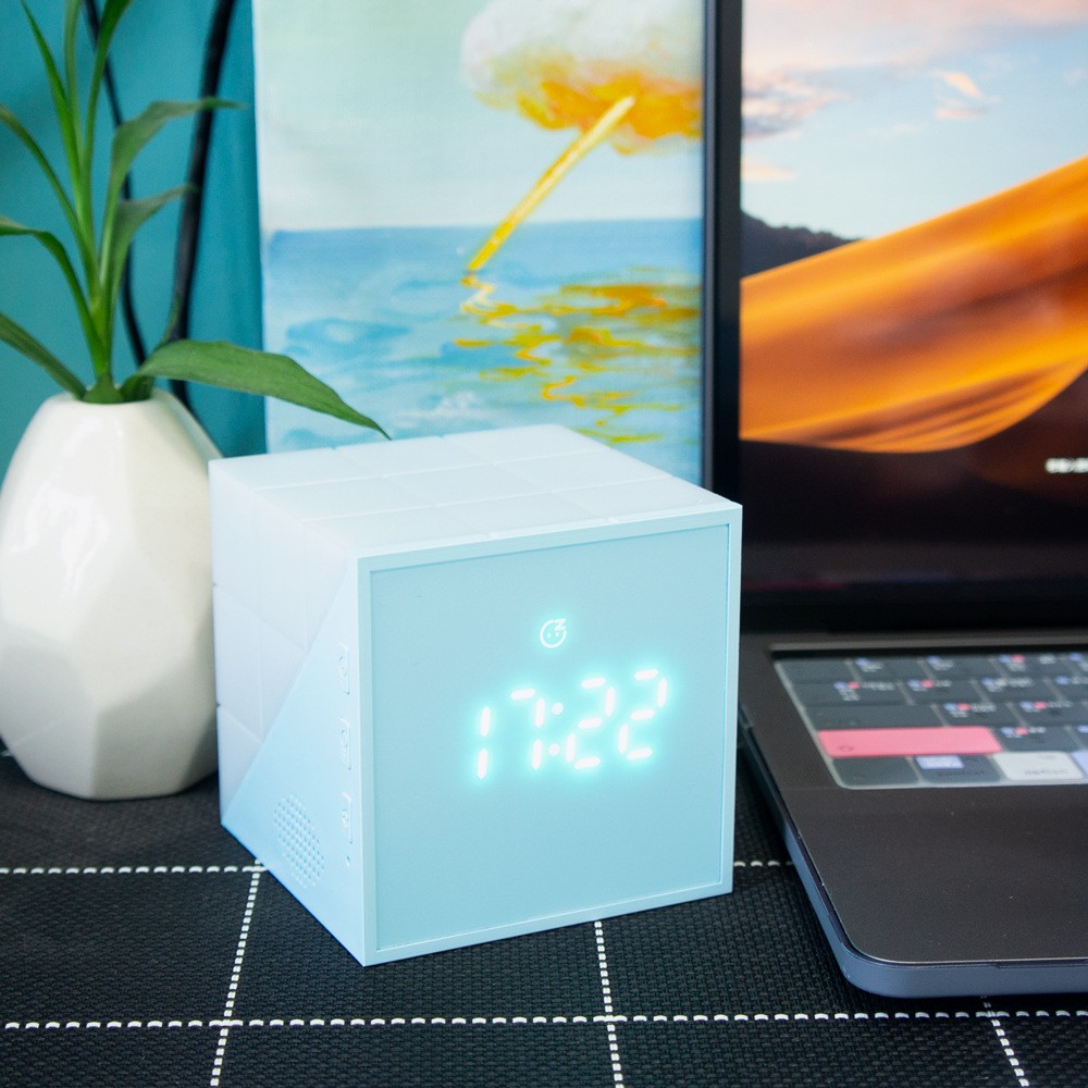 Đồng hồ báo thức thông minh rubik giúp huấn luyện giấc ngủ, gọi chủ nhân mỗi sớm mai thức dậy đúng giờ bằng giọng nói dễ thương, đáng yêu.- Cấu tạo: 5 nút bấm, 4 nút chia điều cho 2 bên để điều chỉnh giờ, ngày tháng, báo thức, xem nhiệt độ xung quanh bạn, nút trên đỉnh đầu dùng để điều chỉnh đèn.