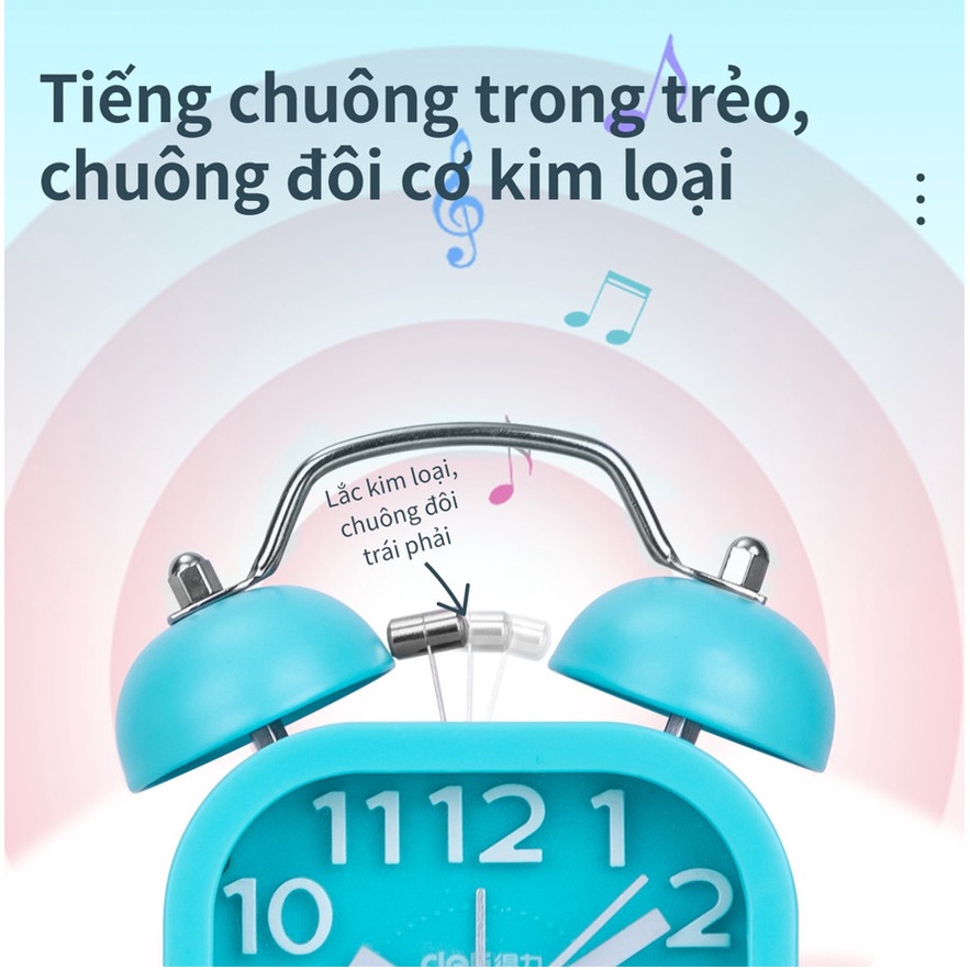 Đồng hồ báo thức kim loại Deli -Chuông đôi kêu to,quét không gây tiếng ồn, thời gian chính xác -9035,9024,8802- Diệp Lạc