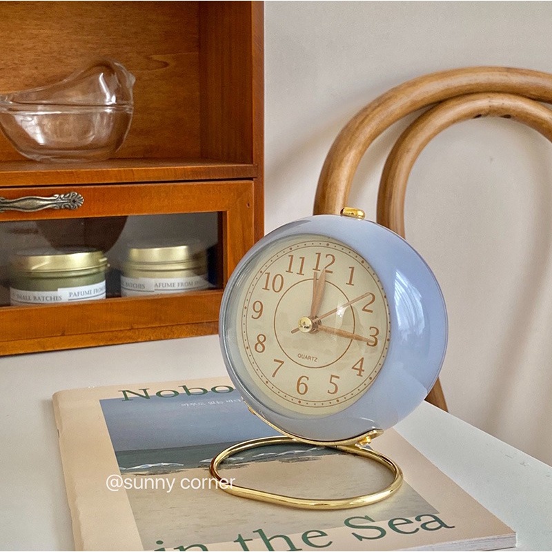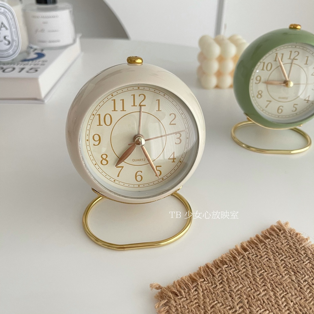 Đồng hồ báo thức phong cách Vintage khung kim loại sang trọng, phù hợp làm decor chụp ảnh