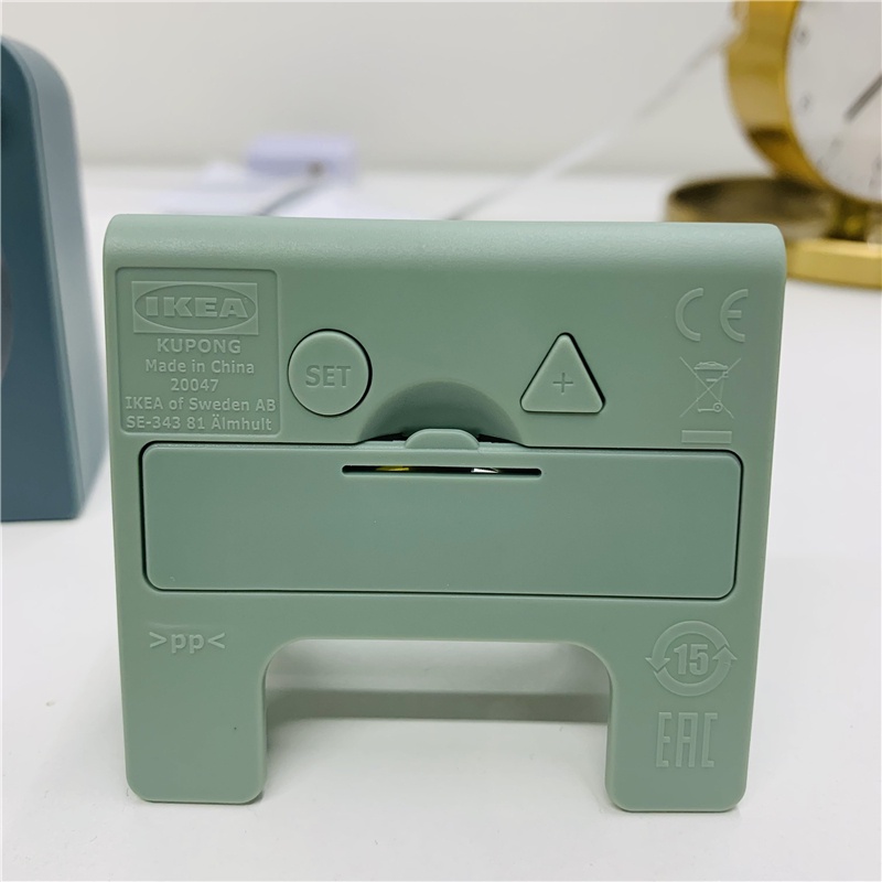 Đồng hồ Kupong IKEA trang bị phần khung được làm từ nhựa PP bền đẹp, chịu lực rất tốt. Là một chiếc đồng hồ báo thức nhỏ và gọn gàng với màu xanh xám - bạn có thể dễ dàng tìm thấy nó trên bàn cạnh giường ngủ hoặc mang theo trong những chuyến du lịch. Bạn có thể dễ dàng cài đặt thời gian báo thức bằng cách sử dụng 2 nút ở mặt sau của đồng hồ báo thức.
