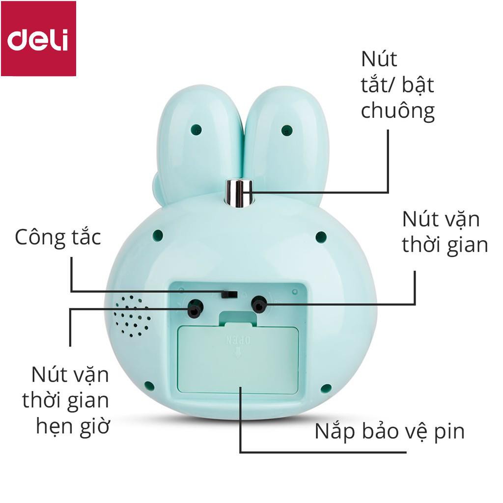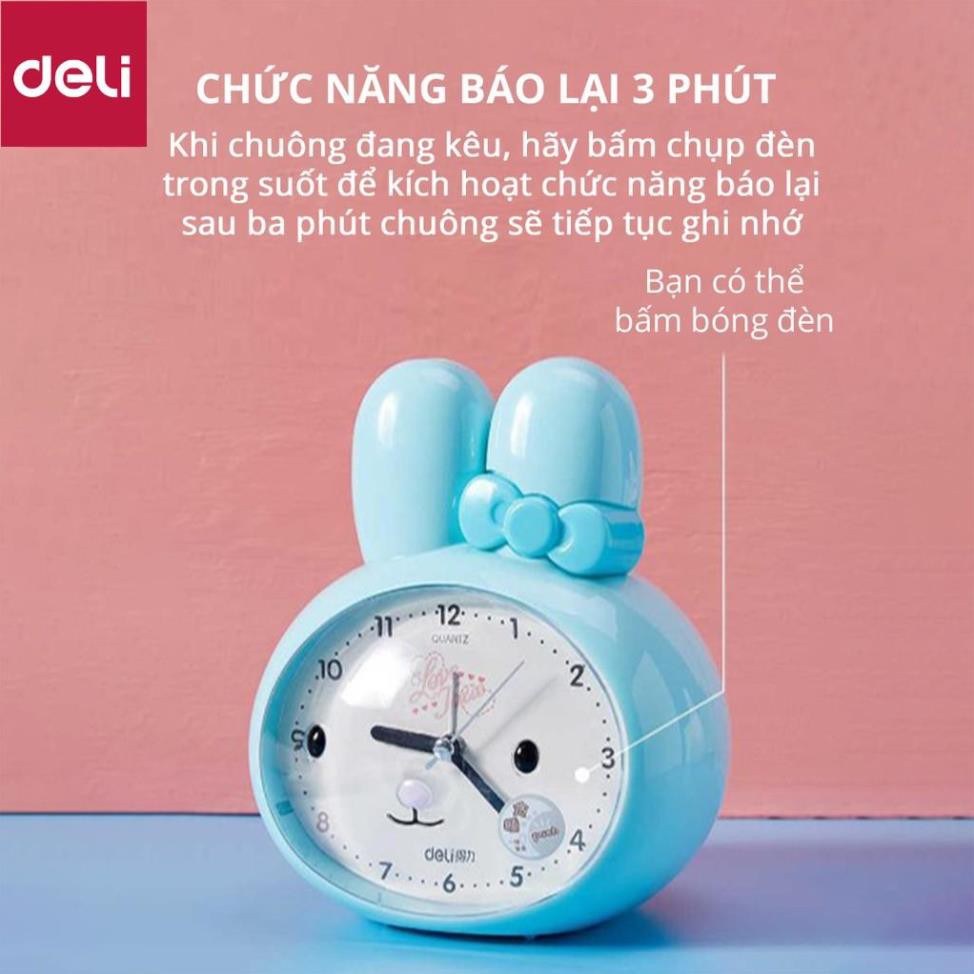 Nhà cửa & Đời sống > Trang trí nhà cửa > Đồng hồ || Đồng hồ báo thức thỏ hoạt hình Deli - Trắng/ Xanh/ Hồng - 8803 [Deli]Còn hàng
