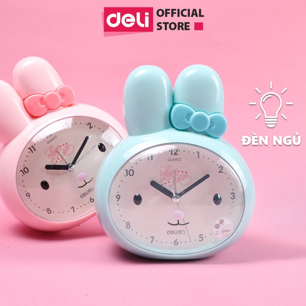 Đồng hồ báo thức thỏ hoạt hình Deli - 3 màu Trắng/ Xanh/ Hồng - 8803