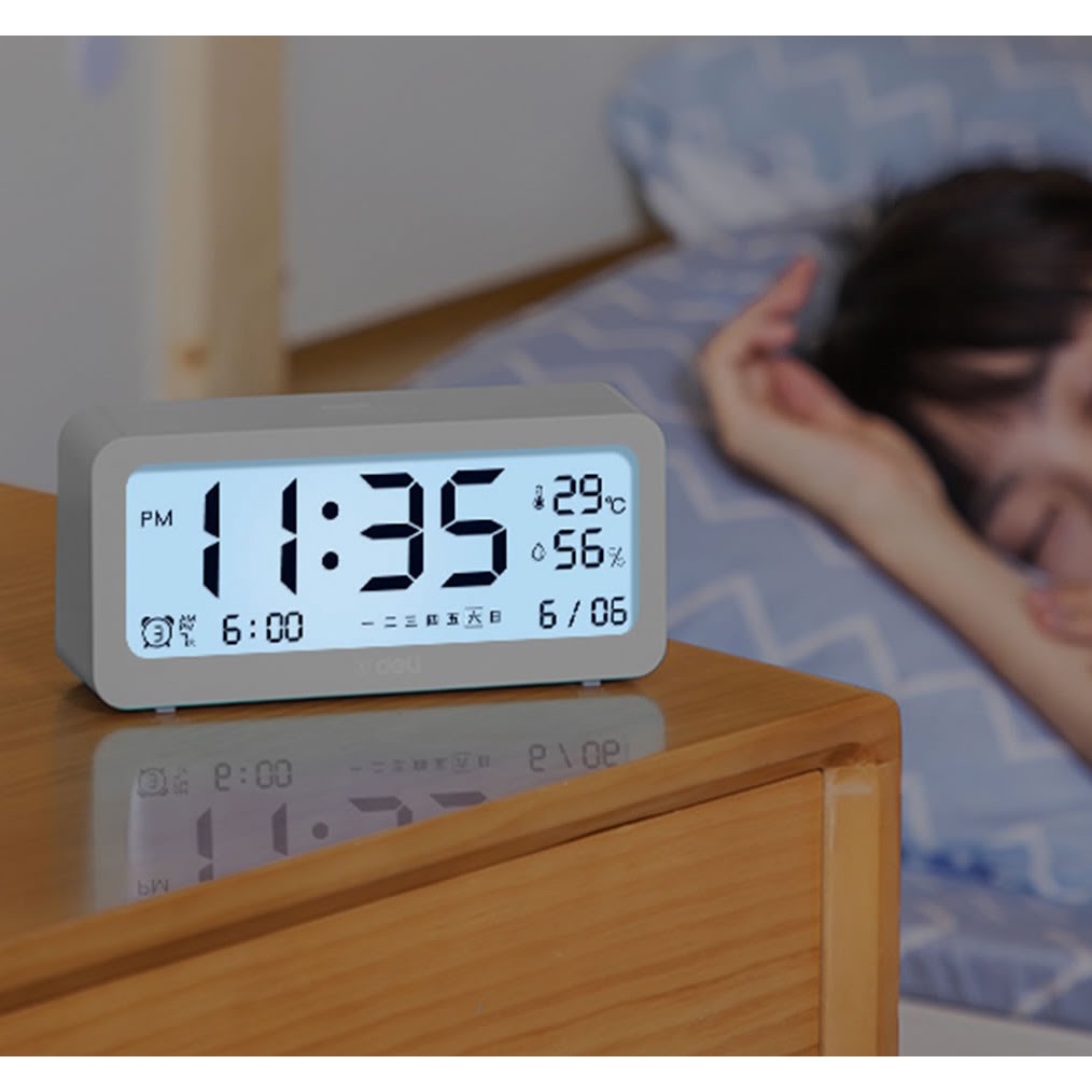 Đồng hồ báo thức tích hợp nhiệt ẩm kế điện tử DELI