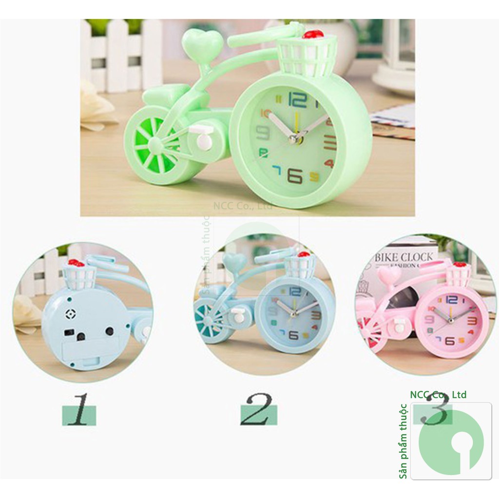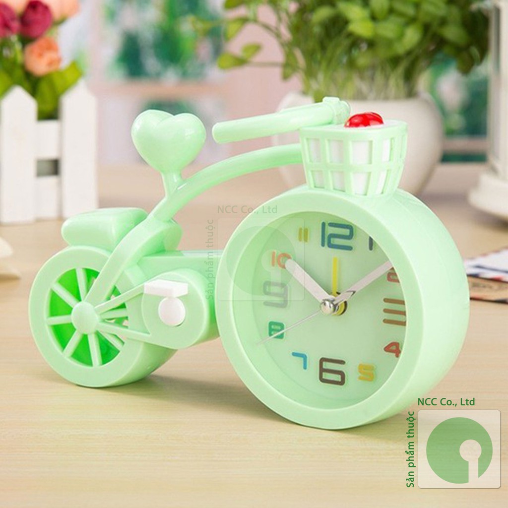 - Đồng hồ báo thức hình xe đạp xinh xắn, làm từ nhựa bền đẹp với màu sắc nổi bật cho bạn lựa chọn. Sản phẩm được thiết kế với kiểu dáng hình xe đạp đốc đáo với các chi tiết nhỏ được gia công tỉ mỉ vô cùng tinh tế và đáng yêu.