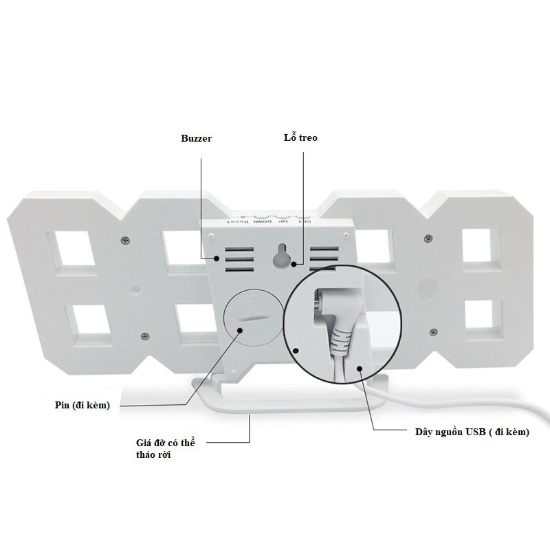 Bộ sản phẩm bao gồm: đồng hồ led 3D kĩ thuật số + hướng dẫn sử dụng + cáp USB
