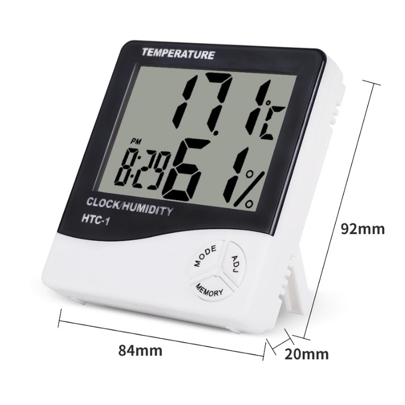 Nhà cửa & Đời sống > Dụng cụ & Thiết bị tiện ích > Dụng cụ > Dụng cụ đo lường || Đồng hồ cảm biến nhiệt độ độ ẩm kiêm đồng hồ báo thức để bàn HTC-1 độ chính xác cao nhiệt kế điện tửCòn hàng