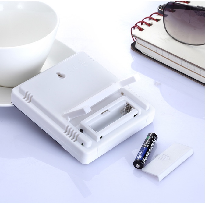- Cài đặt báo thức làm tương tự như cài đặt thời gian. Nguồn điện: 1 Pin * AAA (1.5 V) (Có kèm theo). Chất liệu: Nhựa ABS. Màu sắc: Trắng + Đen Kích thước sản phẩm: 103 * 93 * 22 mm. Kích thước màn hình LCD: 75 x 50 mm.
