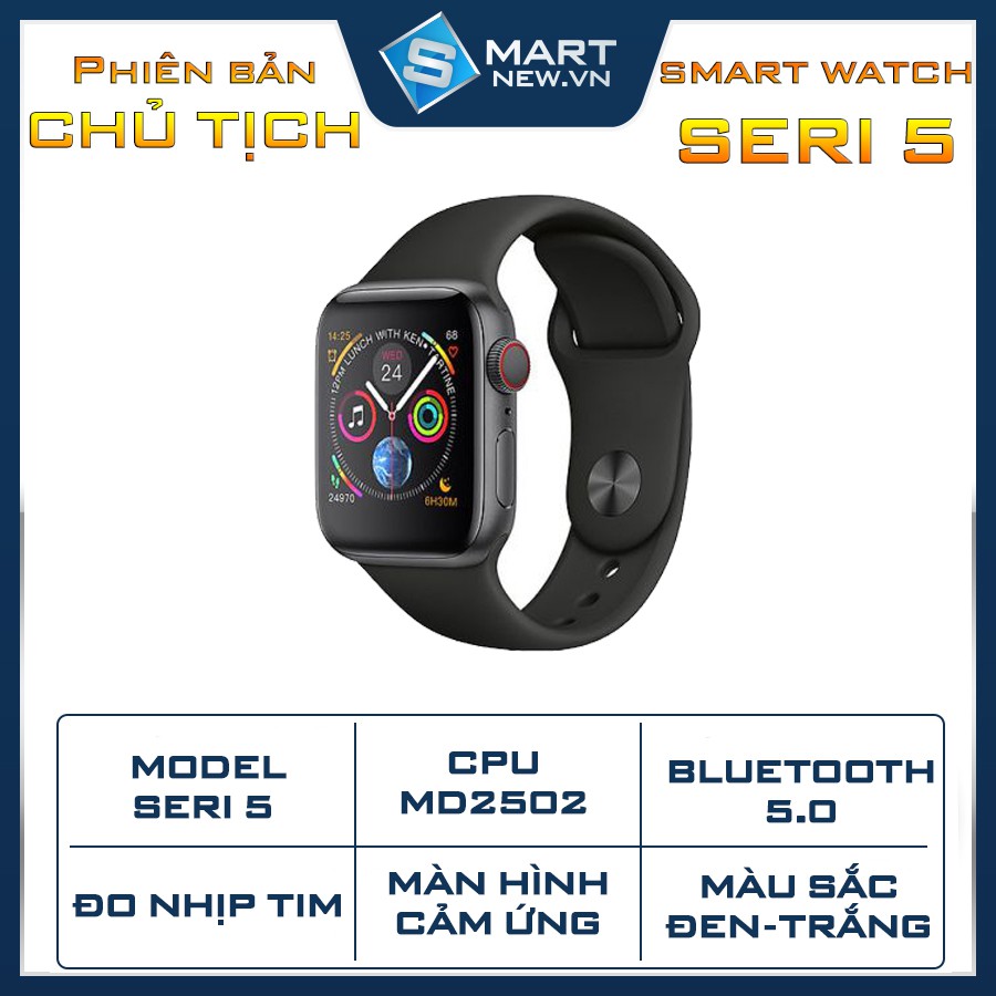 ✔️ Smart watch Seri 5 phiên bản chủ tịch lấy cảm hứng từ các mẫu smart watch cao cấp đến từ apple , là dòng smart watch hiện đại , thanh lịch với mức giá rẻ có thể giúp người muốn trải nghiệm smart watch có thể trải nghiệm 1 sản phẩm đồng hồ thông minh cao cấp với đầy đủ tính năng .