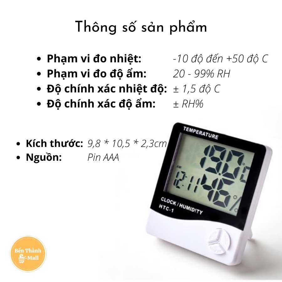 Sản phẩm: Đồng hồ CLOCK/HUMIDITY HTC-1 để bàn trang trí đa năng 3 trong 1, hiển thị thời gian, nhiệt độ, độ ẩm chính xác