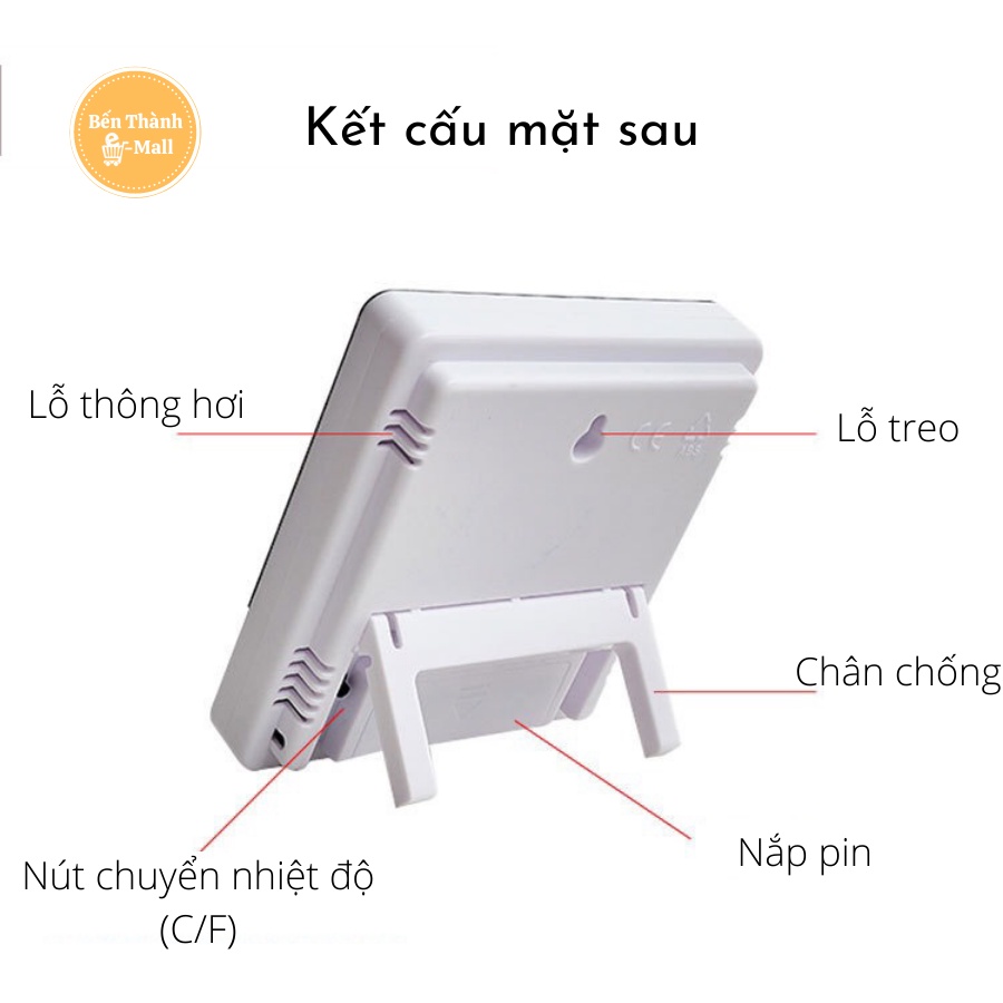 • Màn hình LCD lớn kích thước 80x60mm, độ phân giải 0,1 oC; 32-122oF, các thông số nhiệt độ, thời gian, độ ẩm được hiển thị rõ ràng, giúp bạn nhận biết và quan sát tốt.