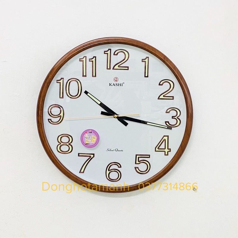 ( Đồng hồ cỡ lớn ) Đồng hồ treo tường Kashi kim đen số dạ Quang máy chạy siêu tĩnh Vân gỗ cực đẹp