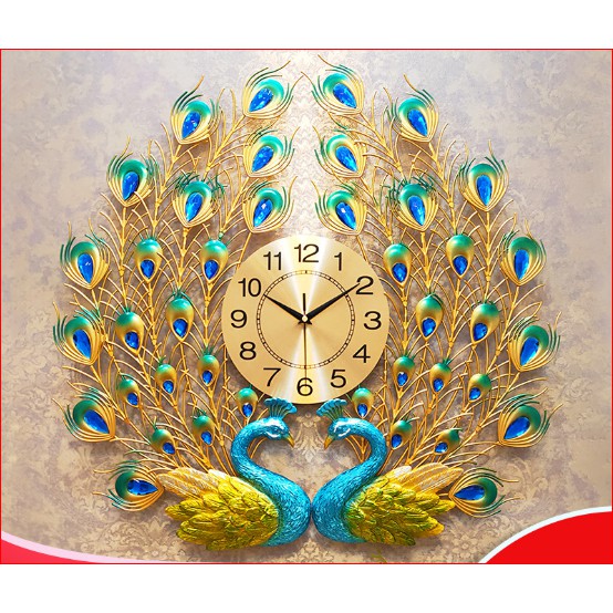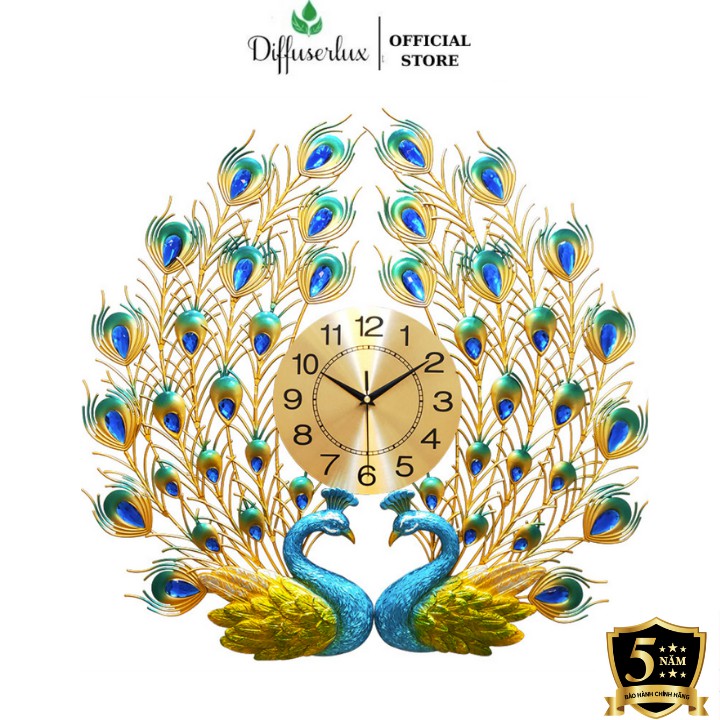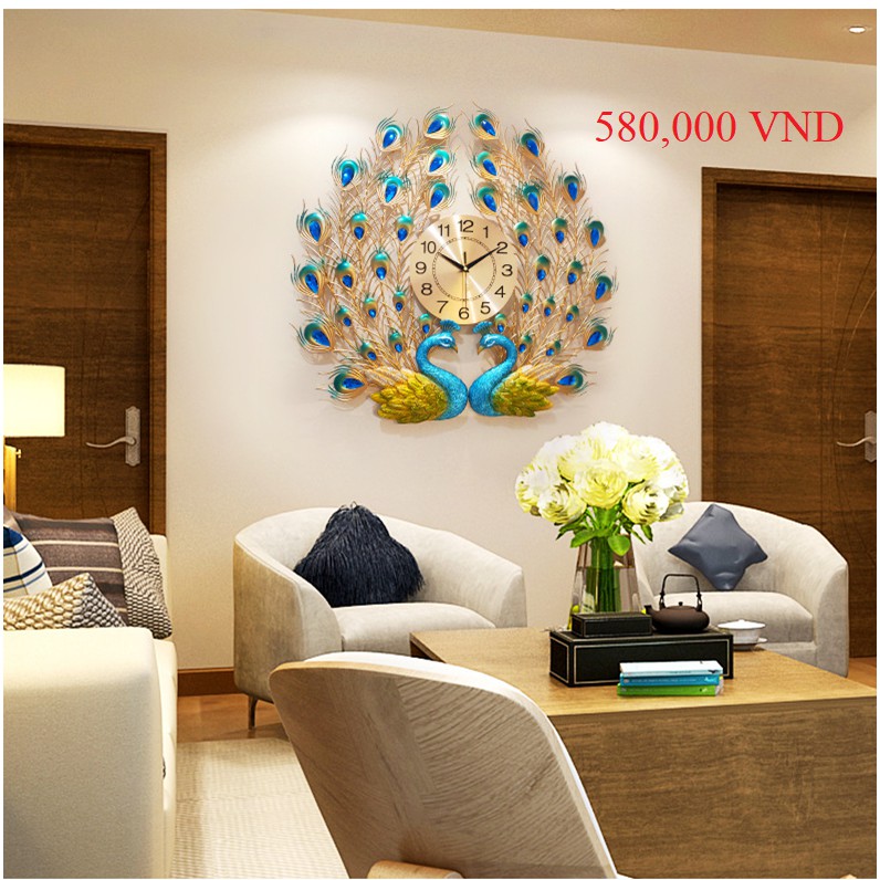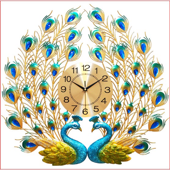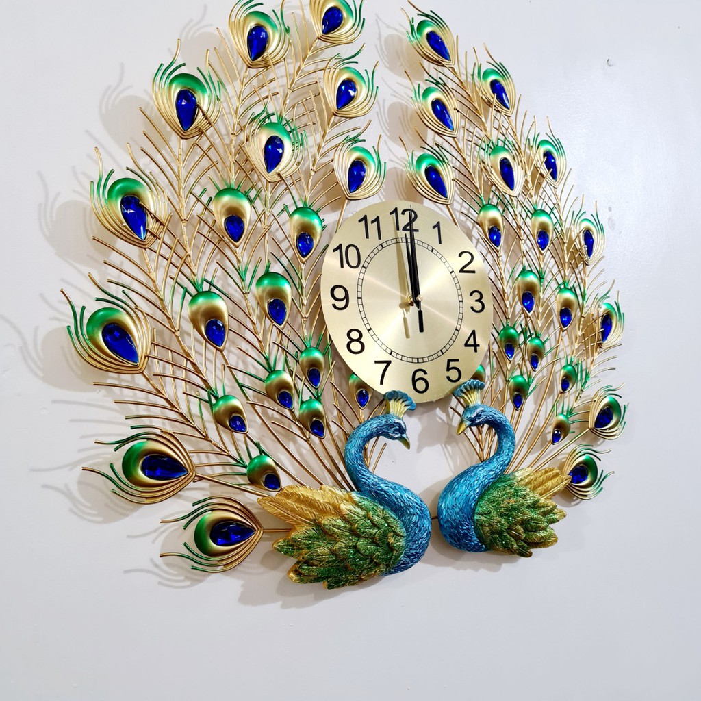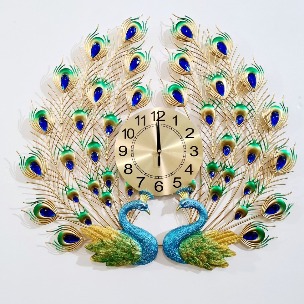 Đồng Hồ Con Công Treo Tường Chim Khổng Tước Xanh Mã 244 kim trôi không gây tiếng động trang trí phòng khách