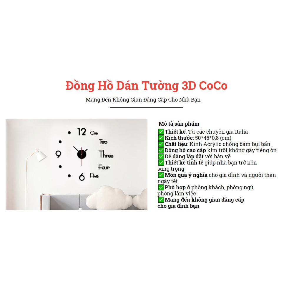 Giới thiệu Đồng Hồ Dán Tường 3D CoCo - Home and Garden