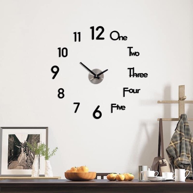 Hãy mua ngay đồng hồ dán tường- Đồng hồ treo tường mang đậm phong cách hiện đại với số & chữ (tiếng Anh) đan xen vào nhau, phù hợp trang trí cho lễ tân, phòng khách, tư gia, coffee shop, nhà hàng, đại sảnh... thêm độc đáo & ấn tượng