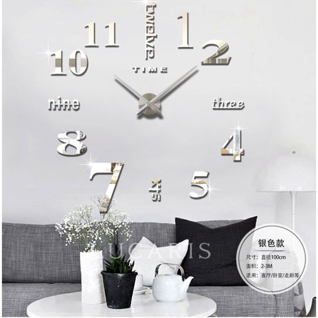 Đồng hồ treo tường không chỉ dùng để xem giờ mà còn là món đồ trang trí không thể thiết trong mỗi gia đình. Tuy nhiên các đồng hồ hiện có trên thị trường thường thiết kế nhỏ và không làm nổi bật, với chiếc đồng hồ dán tường tự làm được thiết kế với với kích thước lơn (đường kính lên tới 90 cm) sẽ làm nổi bật không gian nhà bạn.Chiếc đồng hồ dán tường tự làm này được thiết kế với bộ số bằng nhựa tráng gương và xốp cao cấp có sẵn keo dán ở 1 mặt; bộ kim bằng thép không gỉ lớn; bộ máy riêng. Với các bộ phận tách rời giúp bạn có thể lắp đặt ở bất cứ vị trí nào trong nhà theo phong cách riêng của mình