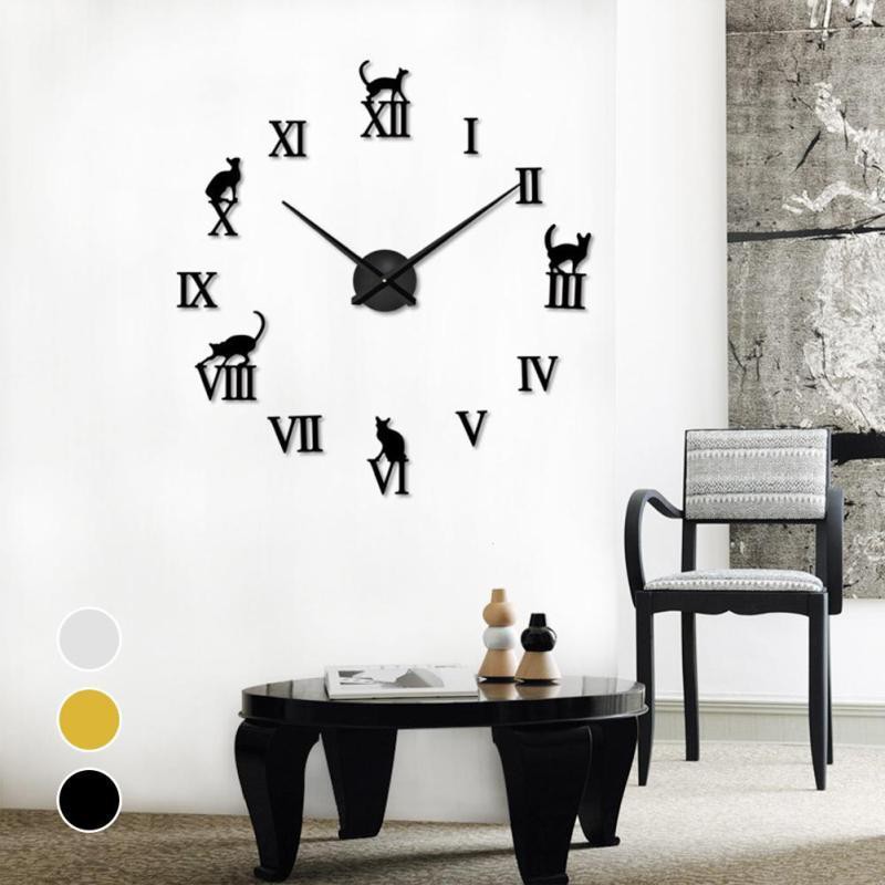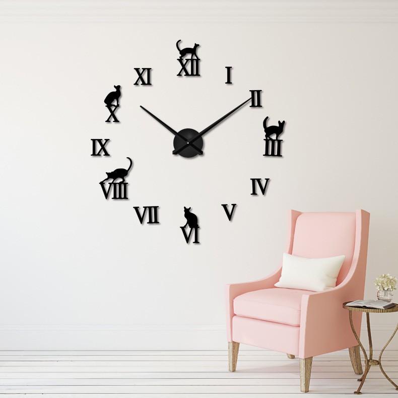 Nhà cửa & Đời sống > Trang trí nhà cửa > Đồng hồ || Đồng Hồ Dán Tường Số La Mã Và Hình Mèo Sang Trọng Trang Trí Cao CấpCòn hàng